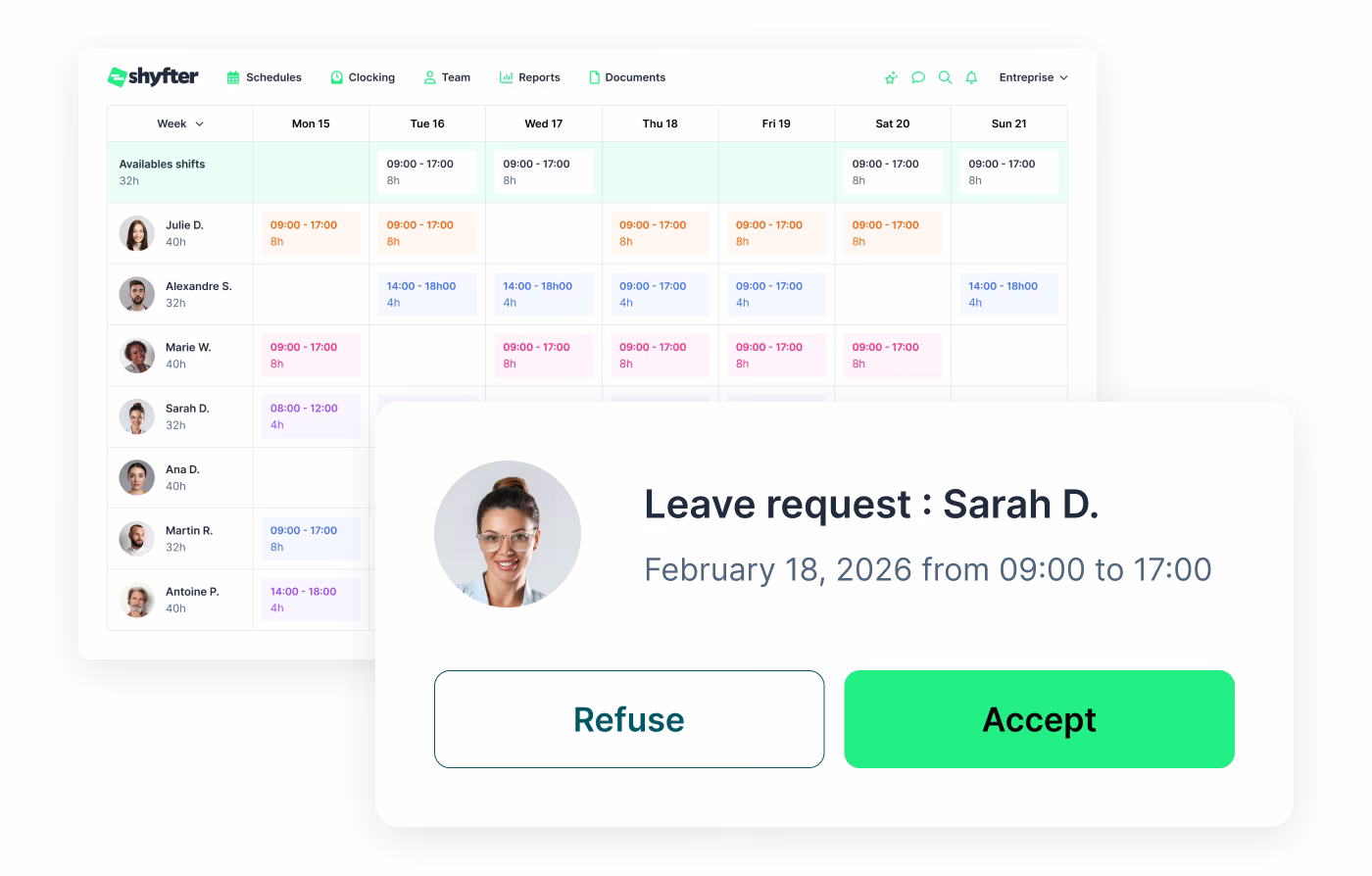 One-click requests, fast approvals, and a schedule that’s always up to date