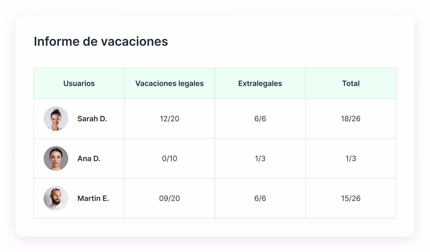 Informes detallados sobre las vacaciones tomadas, futuras y restantes