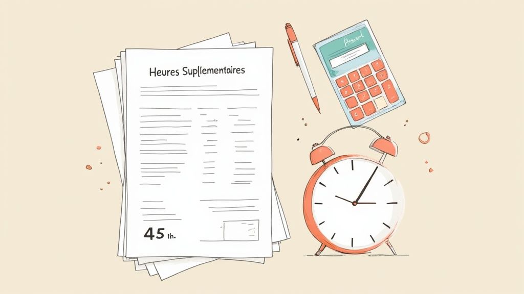 Le calcul des heures supplémentaires peut faire un peu peur au premier abord, mais c’est en réalité une mécanique assez simple une fois qu'on a la bonne méthode. Pas besoin d'être expert-comptable pour s'en sortir, il suffit de décomposer le processus. Tout part d'une formule de base qui combine le salaire horaire et les taux de majoration prévus par la loi ou votre convention.